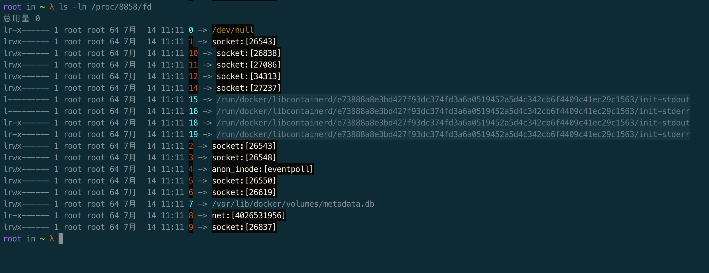 ls -lh /proc/{刚刚找到的进程ID}/fd